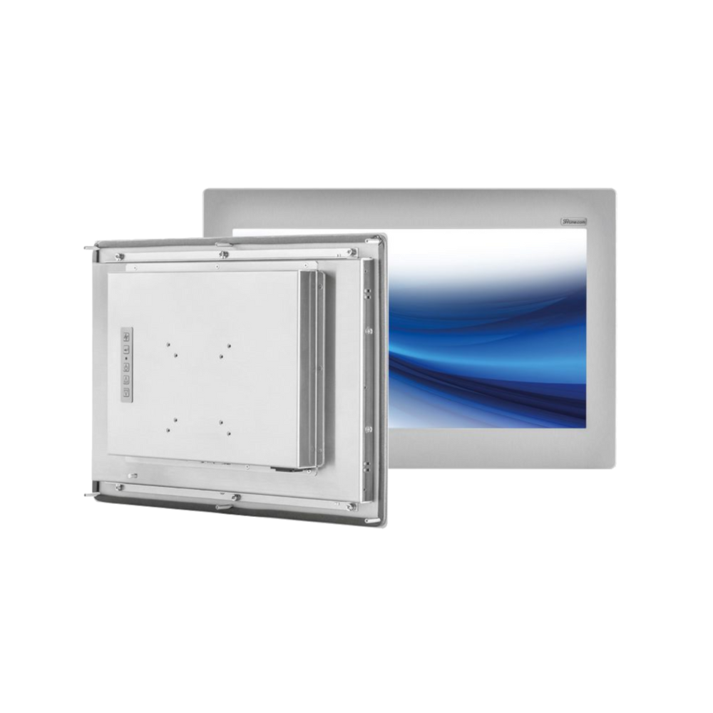 Robuster und Langzeit verfügbarer Einbaumonitor. Standard mit entspiegelter Glasscheibe und IP65.Befestigung über rückwärtig angebrachte Gewindebolzen.