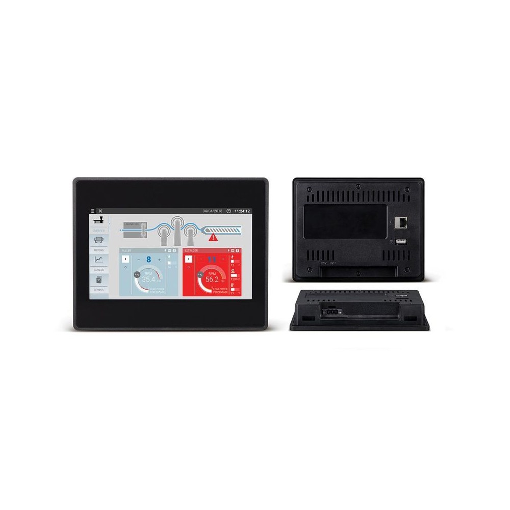 7” TFT Breitbild-Farb-Touchscreen mit Ethernet und USB-Schnittstellen. JMobile runtime.