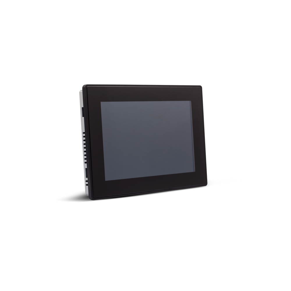 10.1” TFT Breitbild-Farbdisplay, Multitouch projektiv-kapazitiv touchscreen. 3 Ethernet-Ports, 1 serieller Anschluss, 2 USB-Anschlüsse. JMobile runtime.