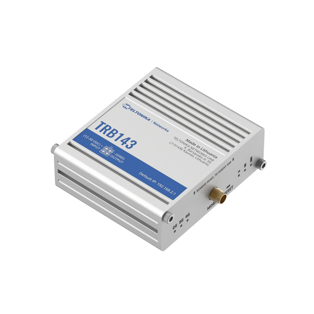 Der Teltonika TRB143 Industrierouter bietet 4G/LTE, Gigabit Ethernet und M-Bus Unterstützung. Ideal für Telemetrie und Umgebungsüberwachung, zeichnet er sich durch robuste Bauweise und vielseitige Konnektivität aus.