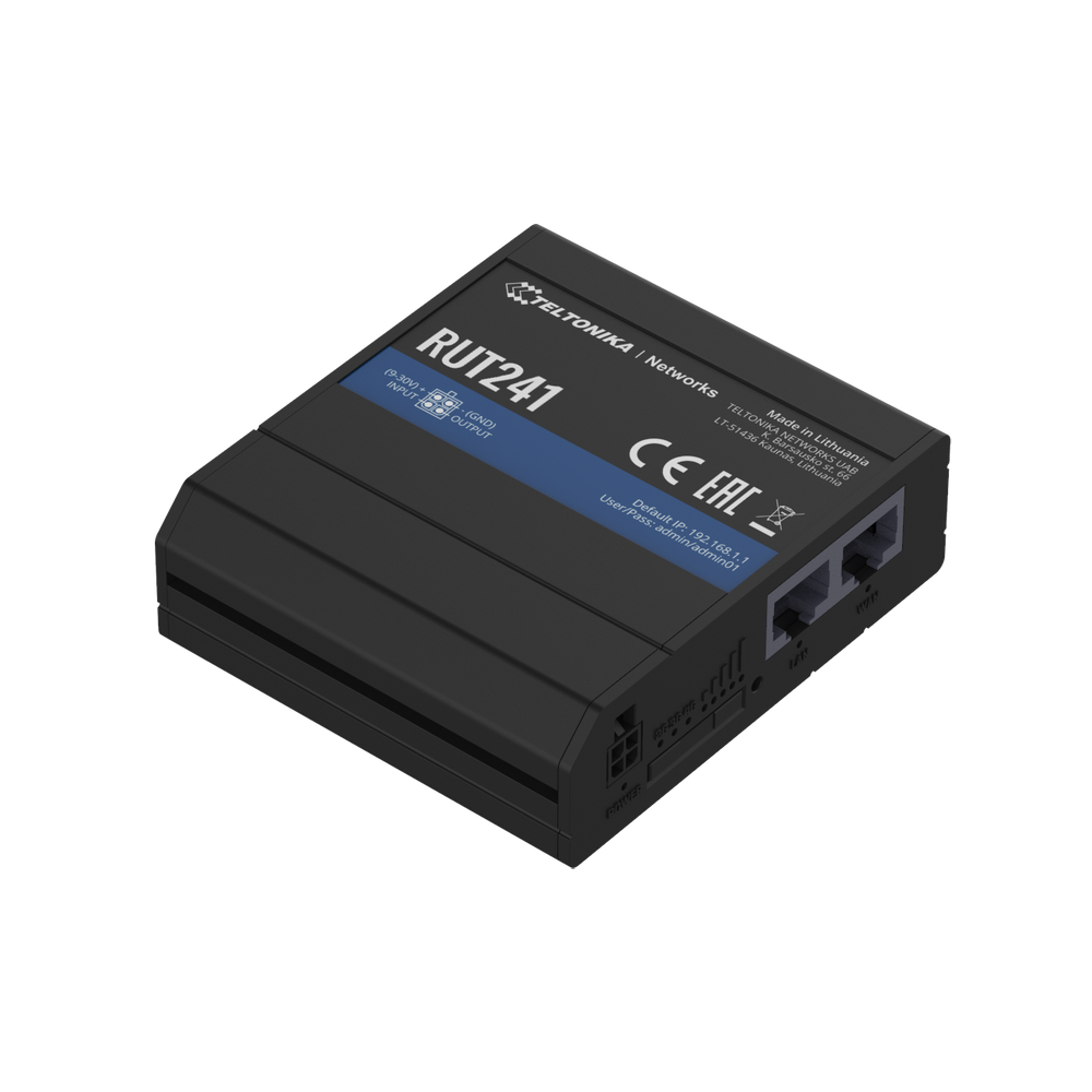 Der RUT241 von Teltonika ist ein leistungsstarker 4G / LTE und WLAN Industrierouter mit Ethernet für professionelle IoT Installationen. Der RUT241 ist verfügt dabei über eine kompakte Bauweise und ist dabei äusserst kosteneffektiv. Dadurch eignet sich der Teltonika RUT241 hervorragend für die schnelle Bereitstellung in unternehmenskritischen Anwendungsbereichen, in welchen eine hohe Konnektivität, Fail Over und erweiterte Networking-, VPN und Sicherheitsfunktionen notwendig sind.