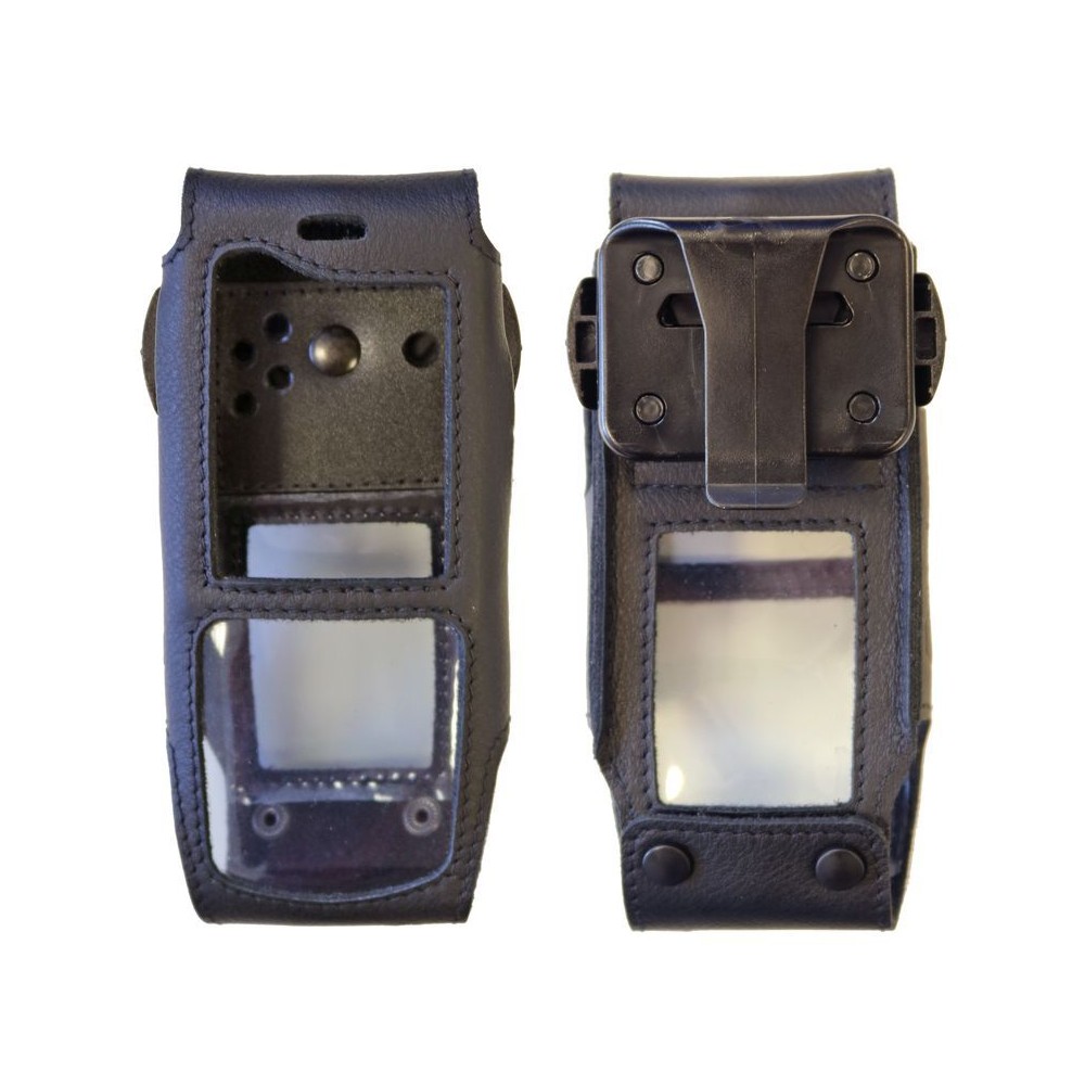 The leather case protects the i.safe MOBILE IS120.1 against scratches and allows it to be securely attached to a strap.