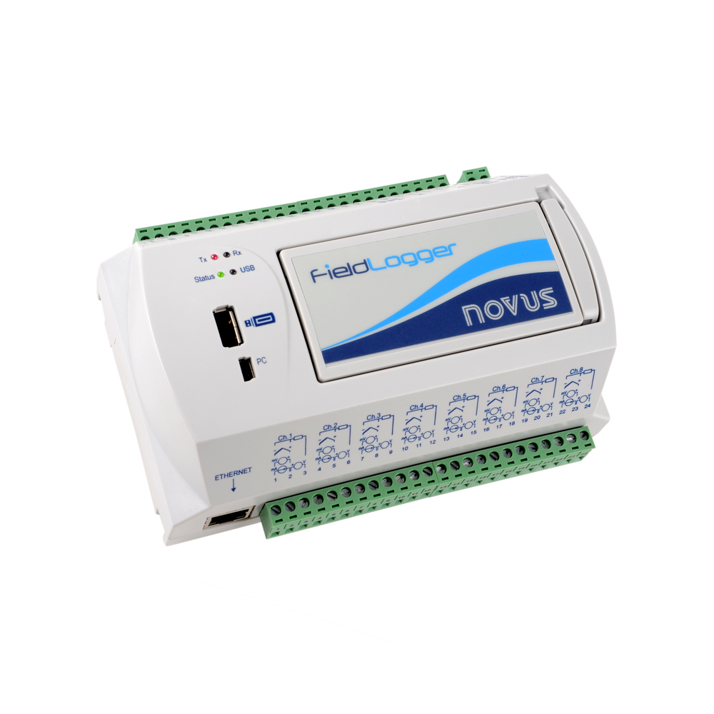 FieldLogger is a versatile, powerful, and yet cost-effective data logger handling analog, digital, and other types of variables with high resolution and speed. It is a high performance and high connectivity equipment and yet easy to configure and operate. It has 8 configurable analog inputs that can read thermocouples, Pt100, Pt1000, voltage and current signals. It also has 2 relay outputs and 8 digital ports individually configurable as inputs or outputs.