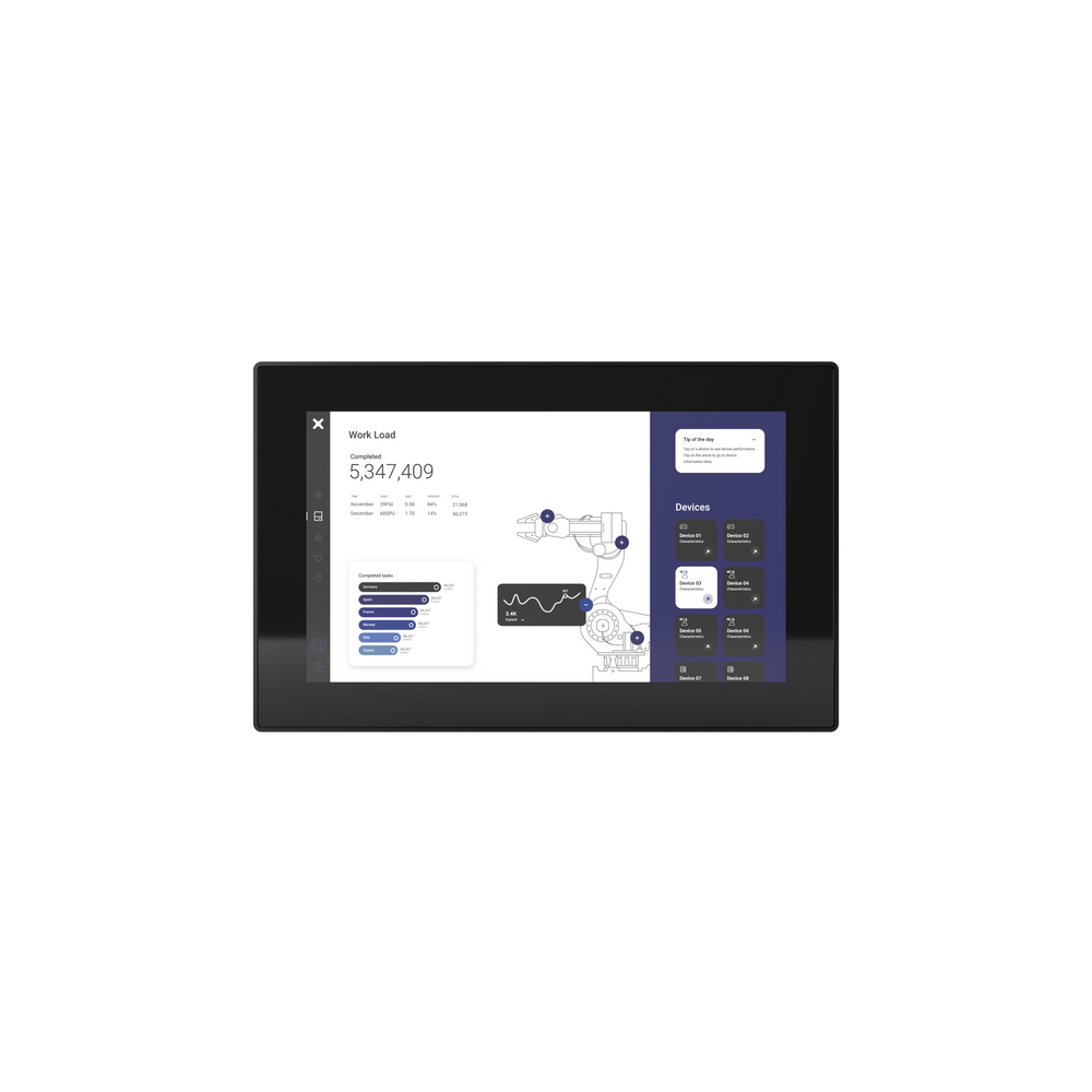 Available soon! The EXOR eX215 WEB operating panel combines a powerful 64-bit RISC quad-core CPU with a 10-inch multi-touch display. With 4GB Flash, 2GB RAM and Linux operating system, it offers high flexibility and performance. Connections including Ethernet, USB and IP66 front protection make it ideal for demanding industrial environments.