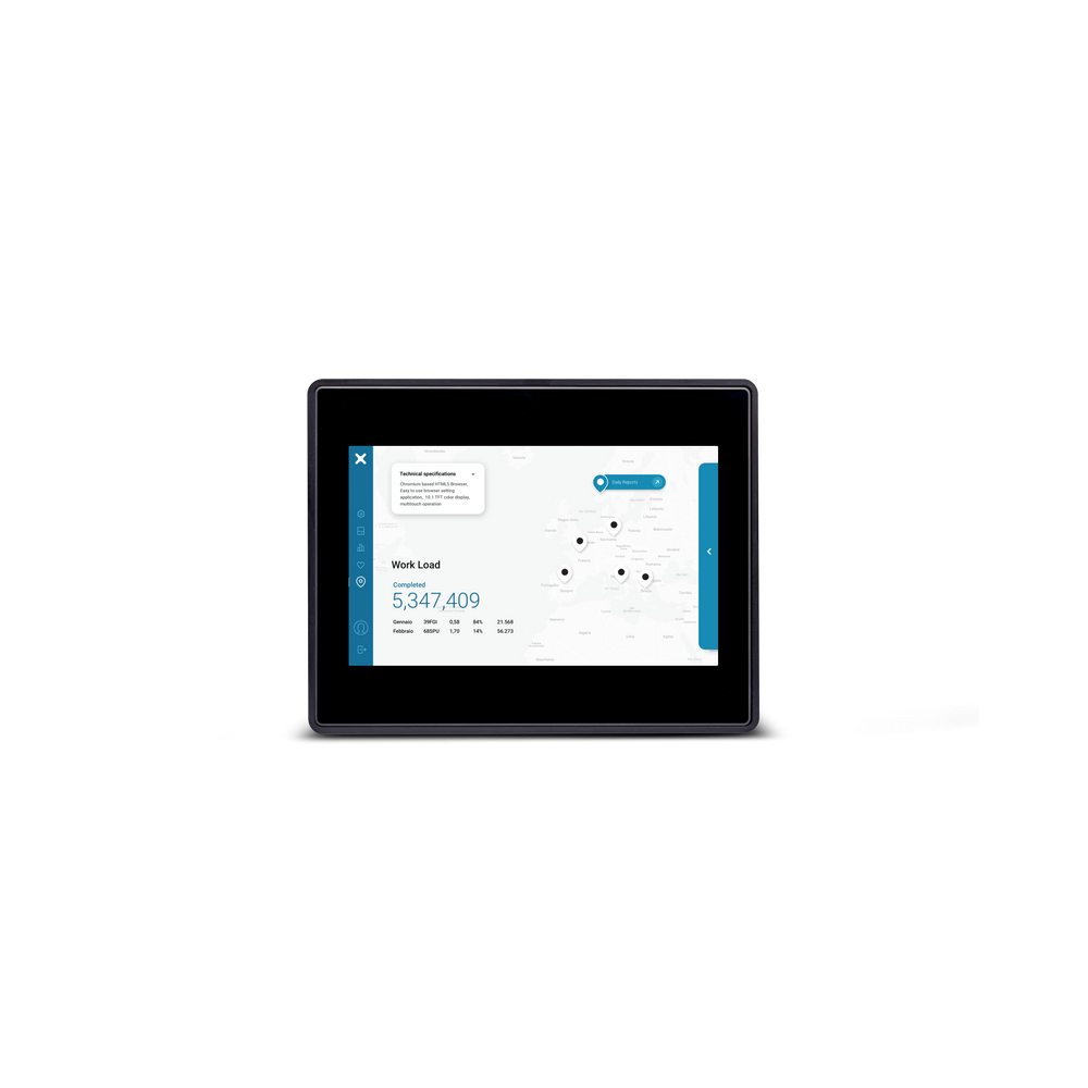 7" TFT widescreen colour display, multi-touch projective capacitive touch screen. 3 Ethernet ports, 1 serial port, 2 USB ports. CODESYS V3 with Ethernet I/O stacks. Fast boot-up of system and project.