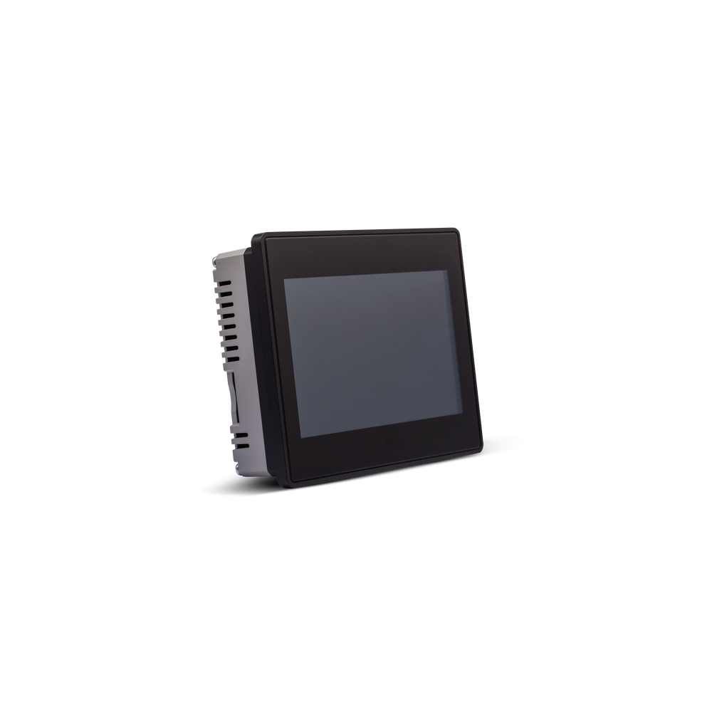 7” widescreen TFT color with multitouch projected capacitive touchscreen. 3 Ethernet ports, 1 serial port, 2 USB ports. JMobile runtime.