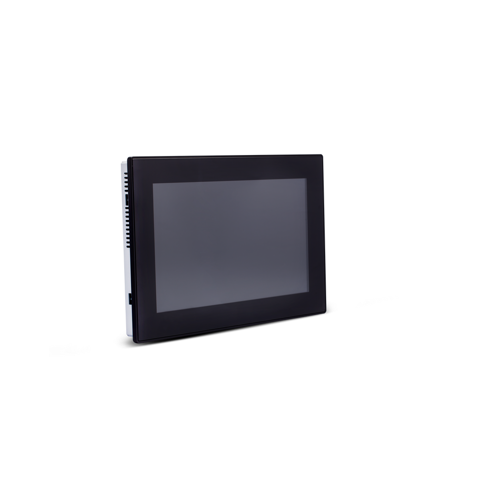 15.6” widescreen TFT color with multitouch projected capacitive touchscreen. 3 Ethernet ports, 1 serial port, 2 USB ports. JMobile runtime.
