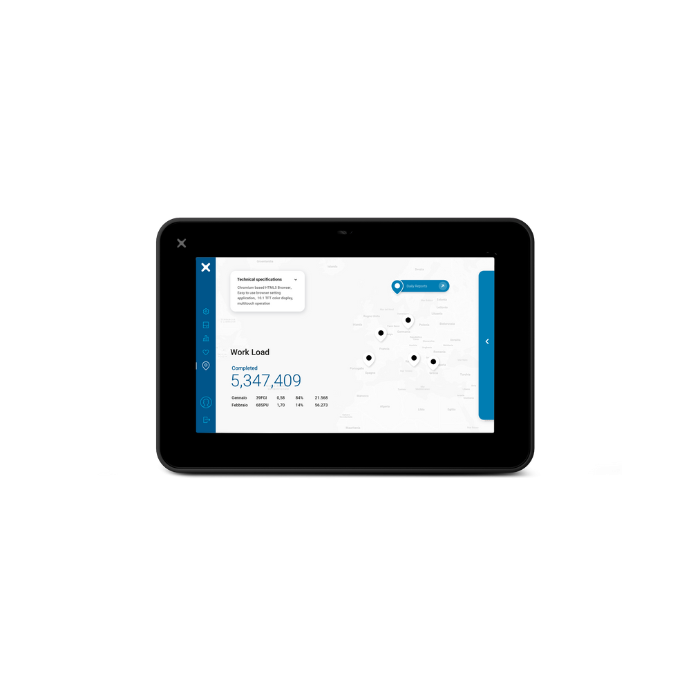 The EXOR JSmart707M is the perfect panel for all IoT edge applications in industry and building automation. The panel impresses with its powerful processor and the following unique selling points: - PoE connection, Wi-Fi interface and NFC device. - Multitouch display and robust glass front panel - Full set of motion and environmental sensors - Ready-to-install with mounting arm, IP67 all around - JMobile Runtime
