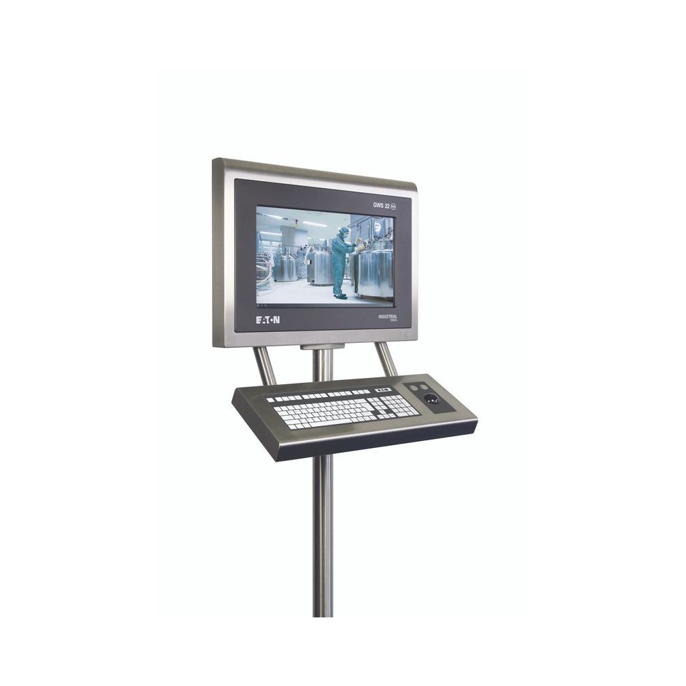 The new addition to Eaton's range of HMI solutions is flexible, efficient and can be used with your existing thin client solution. Designed for use in hygienic or harsh production environments. Take advantage of the ability to use existing hardware while maintaining the highest safety standards. The 22" thin client has a glass touch and communication is implemented with a fibre optic line. The power supply is 110VAC to 240VAC. In addition, you receive a trackball, a keyboard with German layout and a stand for floor mounting.
