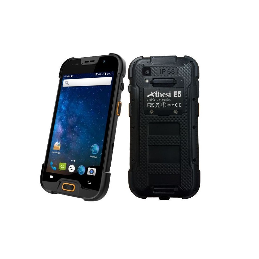 The Athesi E5 mobile phone is a rugged smartphone with protection class IP68 and fall-proof up to a height of 1.70m. The rugged phone can be operated with gloves and has a 13MP camera. Thanks to the strong battery (4600mAh) longer operations can be carried out without problems.
