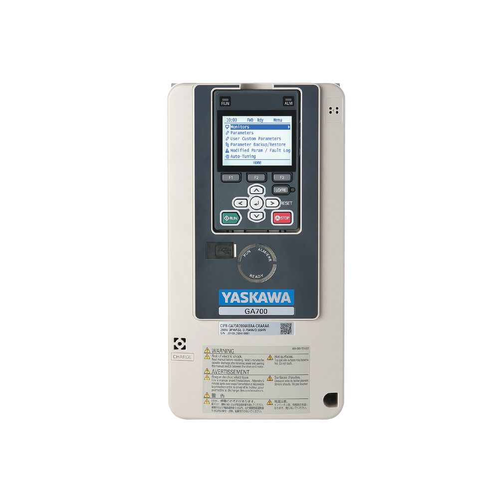 The Yaskawa GA700 series inverter drives convinces with its compact design and many integrated functions. They are available in 1-phase/3-phase, 200V/400V and various output powers. EMC filter, auto tuning, gateway function.