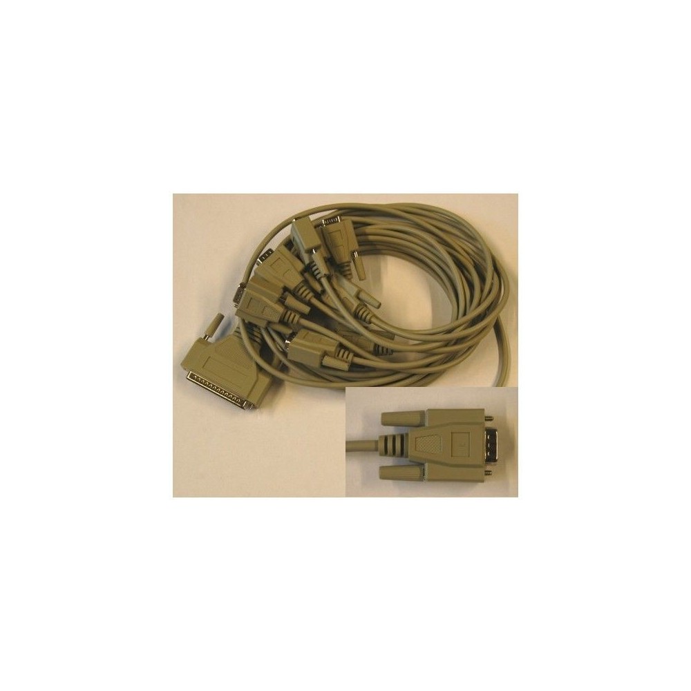 Ce câble "Octopus" sépare les huit ports série du connecteur combiné à 62 signaux. Chaque port est disponible sur un connecteur DB9 mâle. Le connecteur est équipé de vis et se comporte comme un câble série vers un modem.