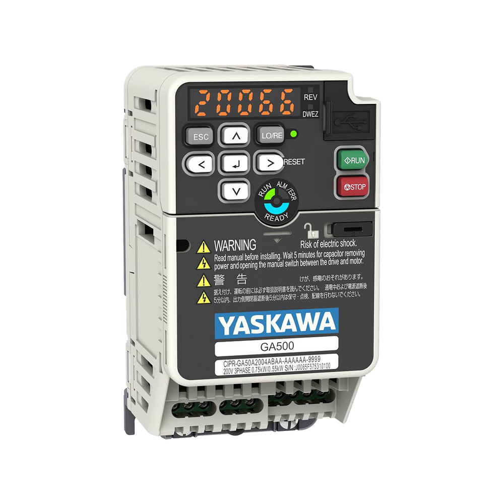 Lesvariateurs de fréquence Yaskawa de la série GA500 convainquent par leur design compact et leurs nombreuses fonctions intégrées. Ils sont disponibles en 1 phase/3 phases , 200V/400V et différentes puissances de sortie.